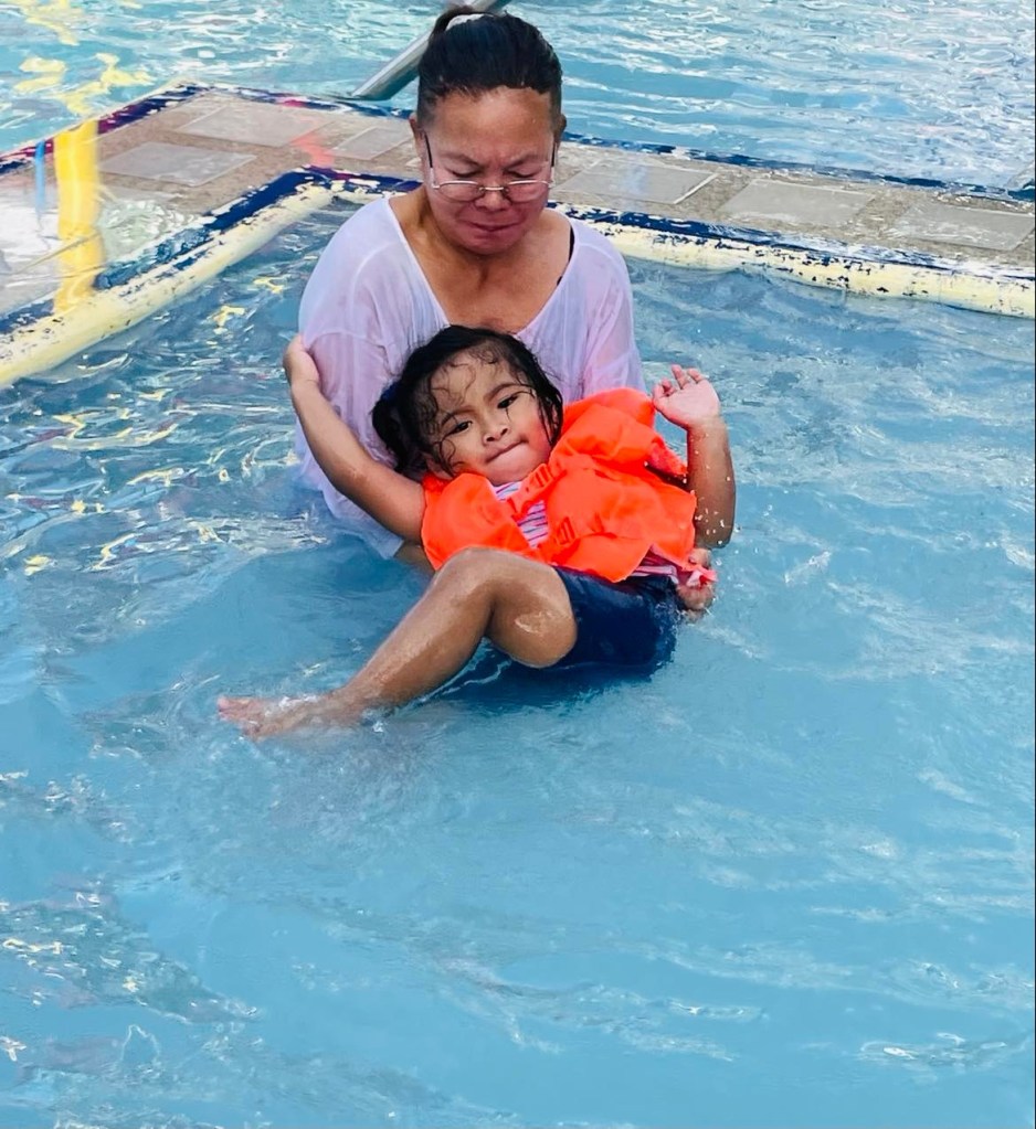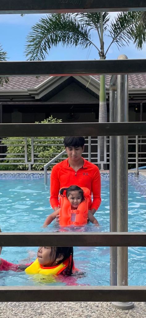 He didn’t want to get out of the water yet but as it is almost late noon, I asked his nanny to take him out of the pool and bathe him.