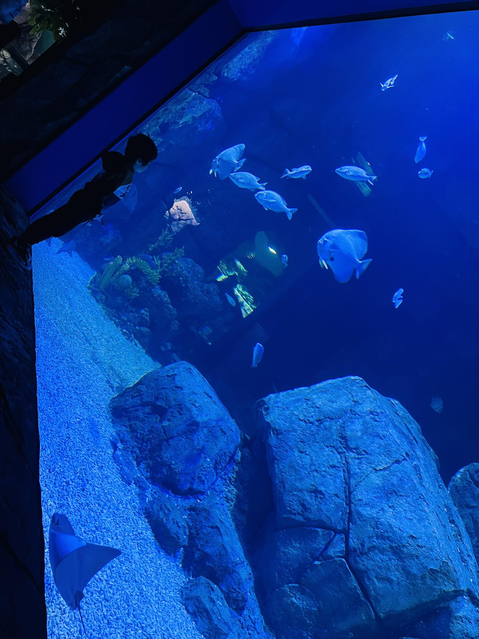 We went there last weekend with our toddler Rain who is very fascinated with water and fish ever since and needless to say, he did enjoy our almost 2 hour walking around the 20 foot long tunnel exploring the oceanarium. He was very amused to see these fish swimming in a state-of-the-art large aquariums bigger than him. He even wants to dump his hands in the water or jump inside to swim with them.