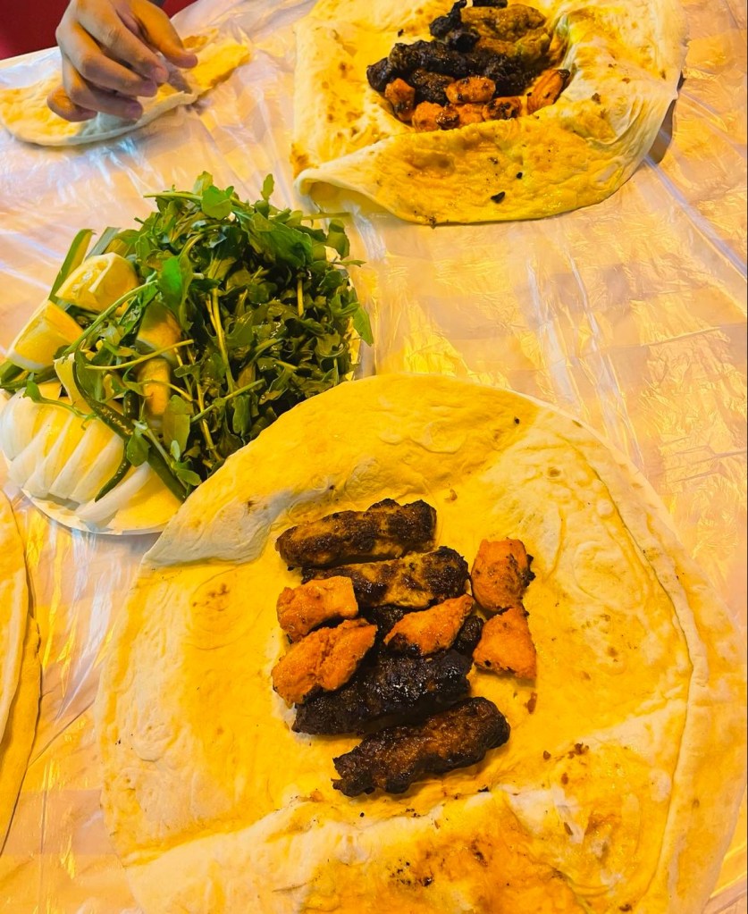 With that, you can have the kuboos (type of bread- organic and homemade), to be dipped in hummus (made of certain beans) as a starter. You may not like it at the beginning, but as you get used to living in the desert, you will surely love it later on.