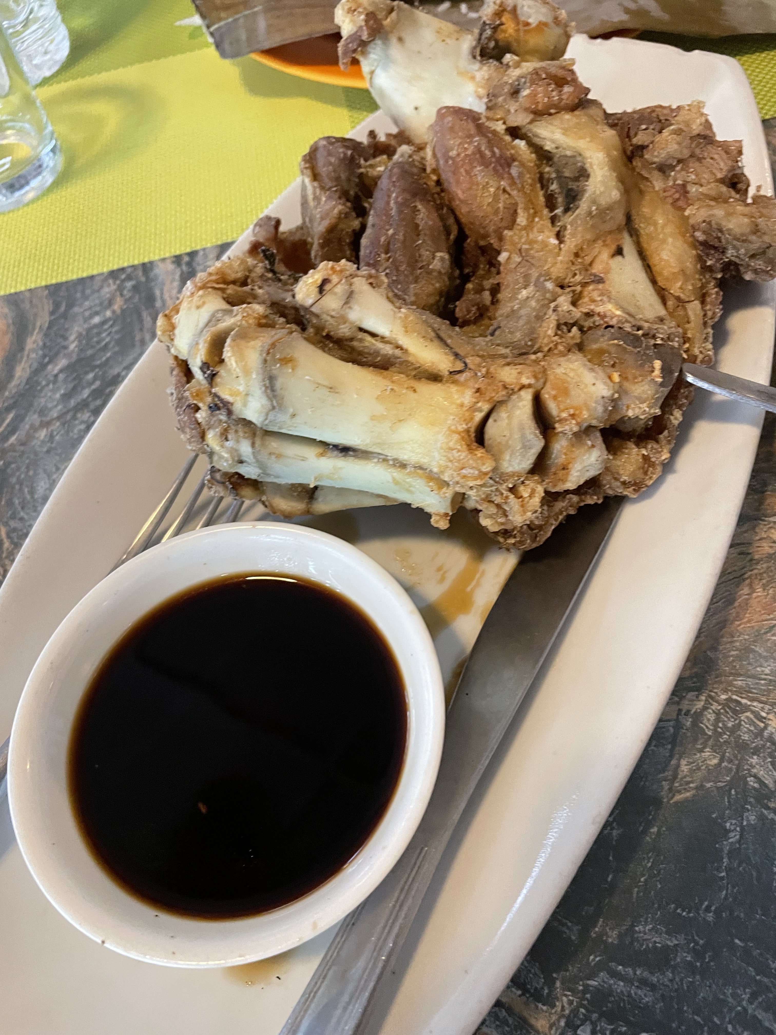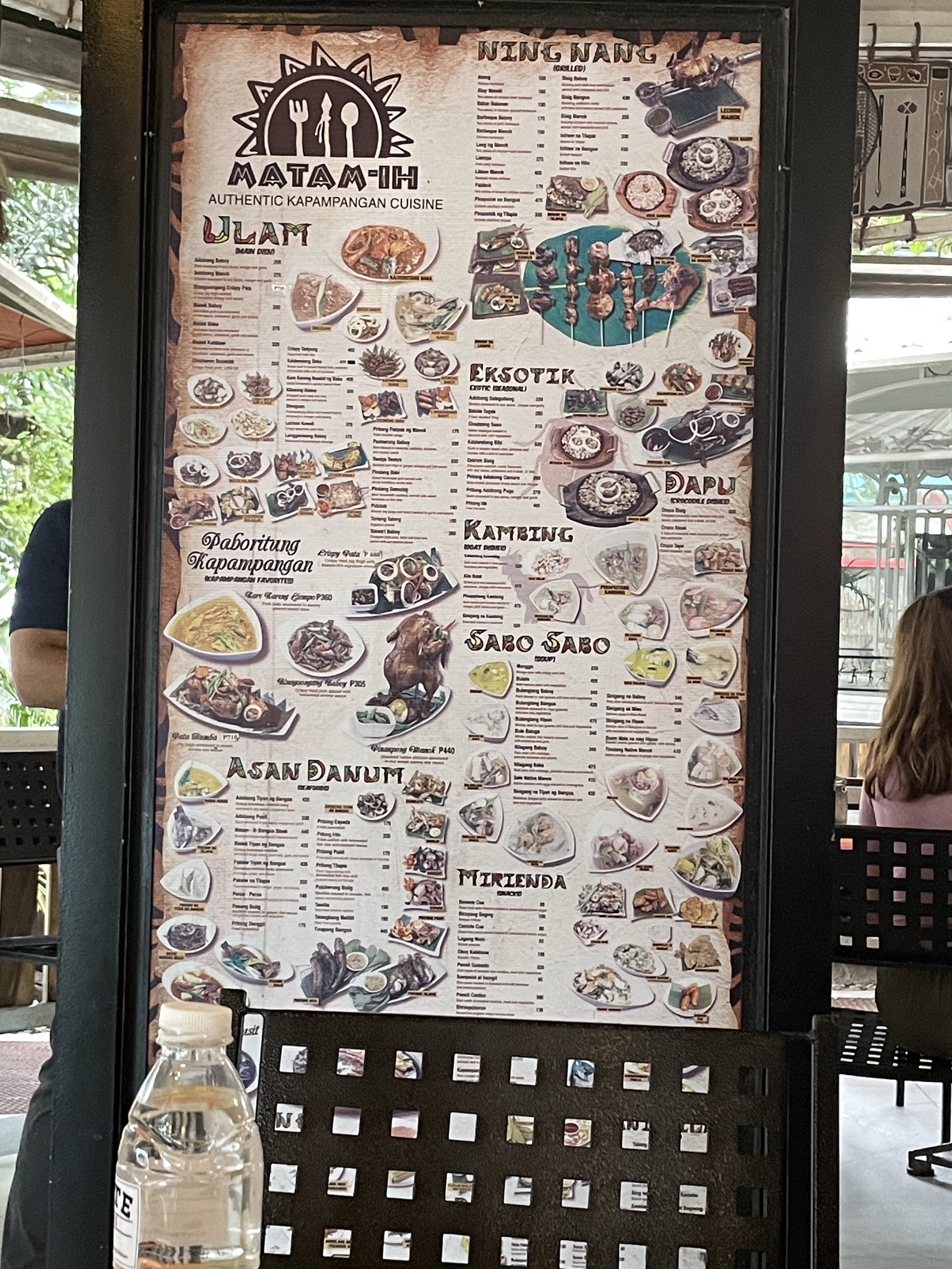 We tried “Authentic Kapampangan Cuisine” restaurant named Matam-ih for a change- and had the usual, Chicharon Bulaklak and grilled chicken ass for starter, Crispy pata, Kare kare, inihaw na hito (grilled) for the main course. I like the way they served the steamed rice wrapped in banana leaf.